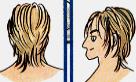 これは一種のウルフ(狼)カットだ。昔のそれに比べると、トップからサイドにかけてヘビーだけど、えり足の感じはウルフカットそのものだ。カット法はサイド−フロンーがシャギーレイヤ−。えり足はうんとうすくすることでウルフに仕上げる。